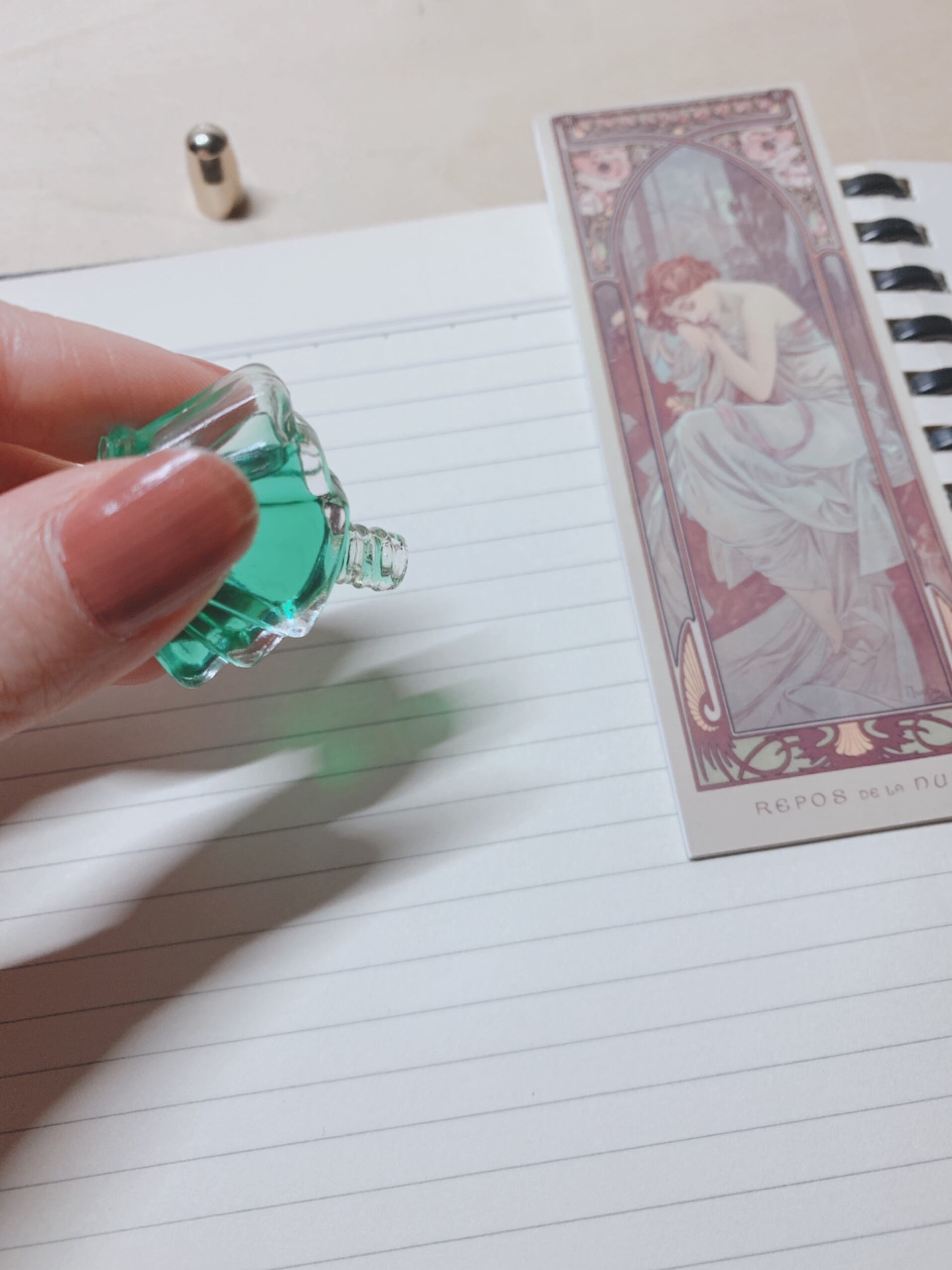 ノートにメモリーオイルをちょんちょんと紙につけて神秘のエネルギーを感じながら書いて効果をアップさせたり